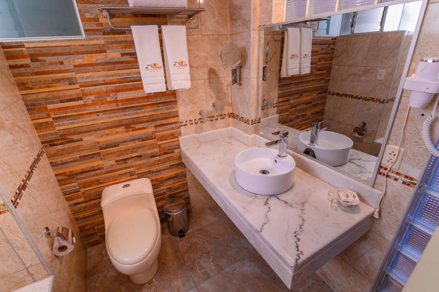 The private bathrooms at Sol Plaza Hotel have hot water showers and separate bathtubs. The rooms are heated and feature a rustic decor with carpeted floors. Extra Oxygen can be provided on request, when suffering from the high altitude.